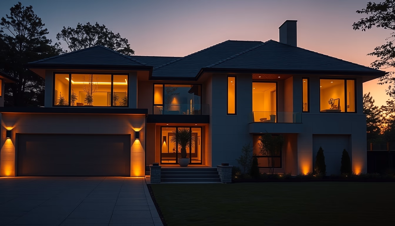 modern luxury house exterior twilight in editorial style