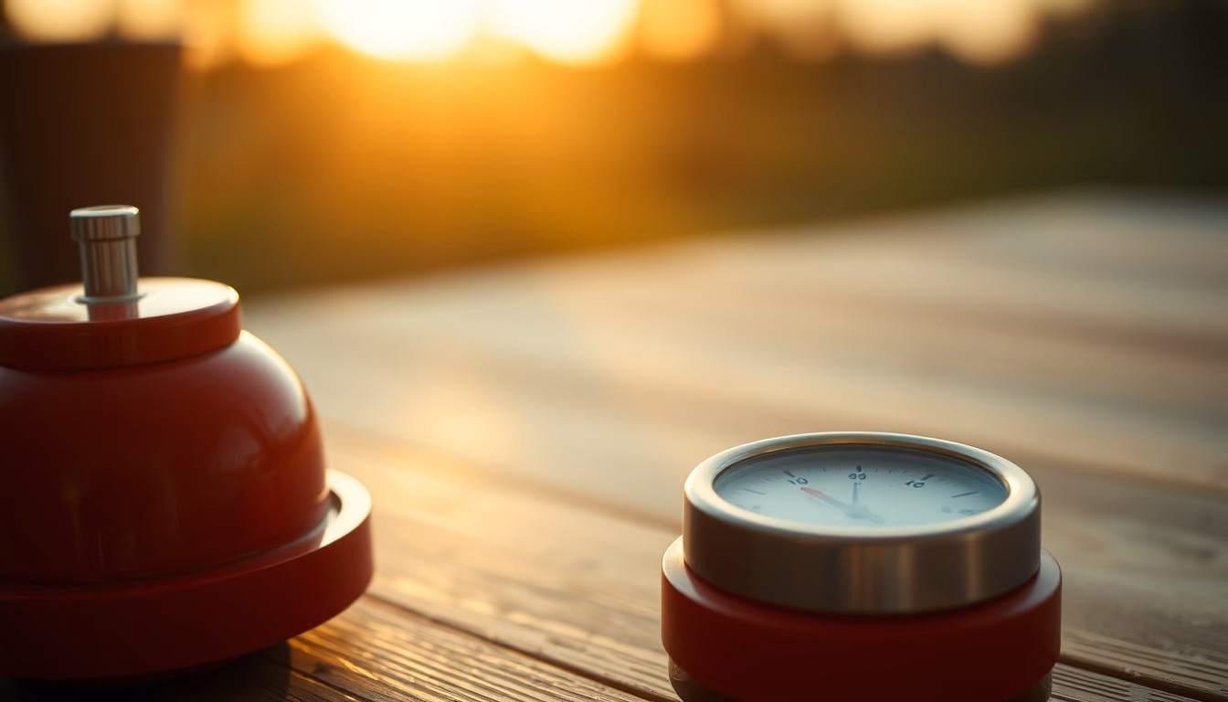 Editorial image of pomodoro timer red, cinematic wide shot.