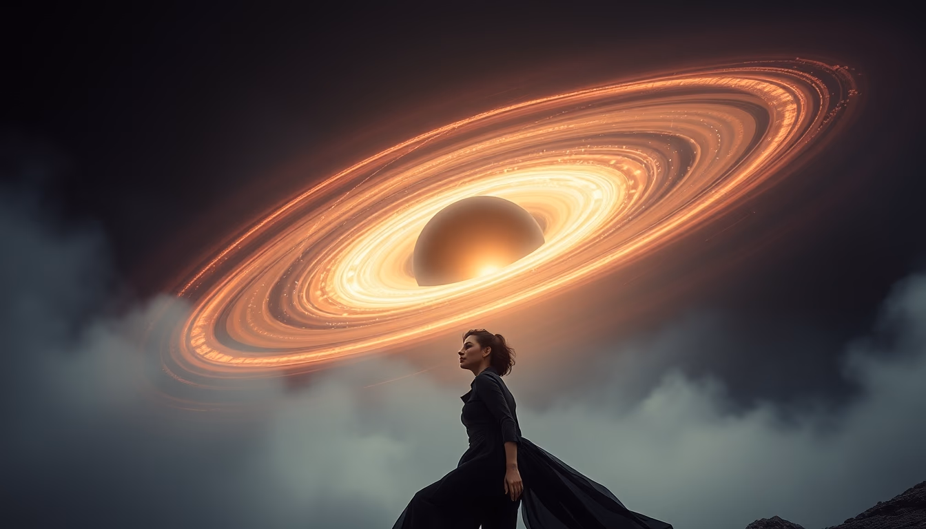 Editorial image of protoplanetary disk forming, high fashion editorial.