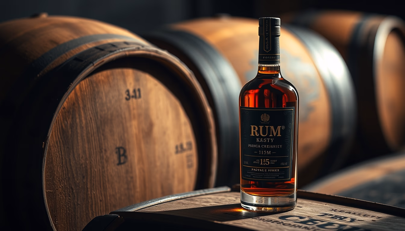 rum aged in barrel in editorial style