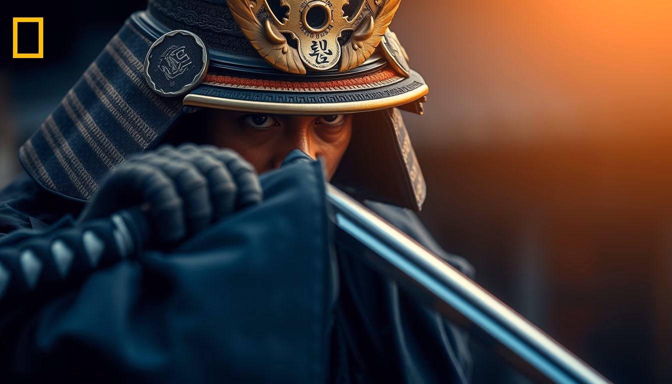 Editorial image of samurai katana, national geographic style.
