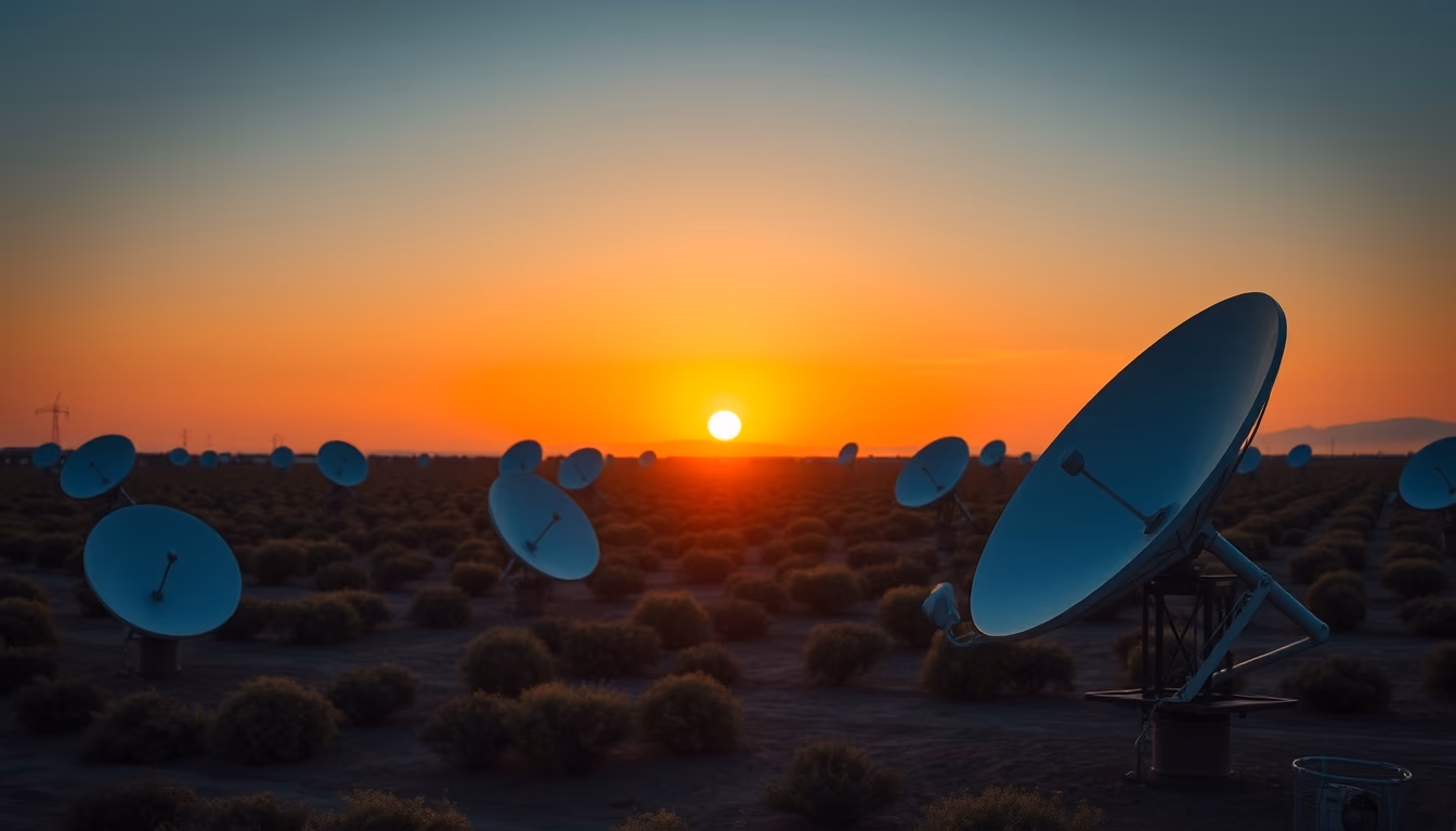 [Satellite dish farm at sunset](https://xn--utiliza-eza.com/en/imagens/satellite-dish-farm-at-sunset-studio-editorial-portrait-v3) by [UtilizAí](https://xn--utiliza-eza.com), CC BY 4.0
