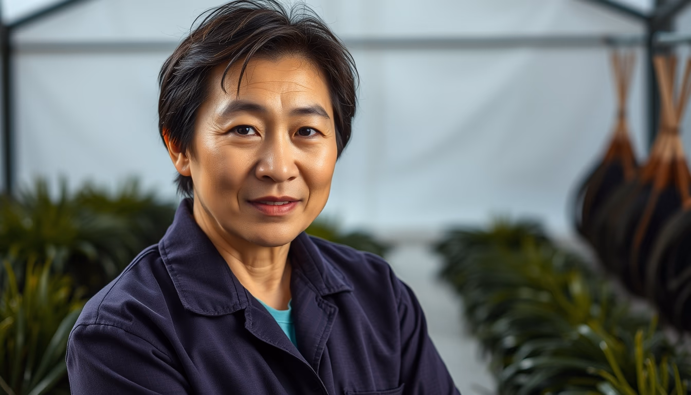 Editorial image of seaweed farm asian, studio editorial portrait.