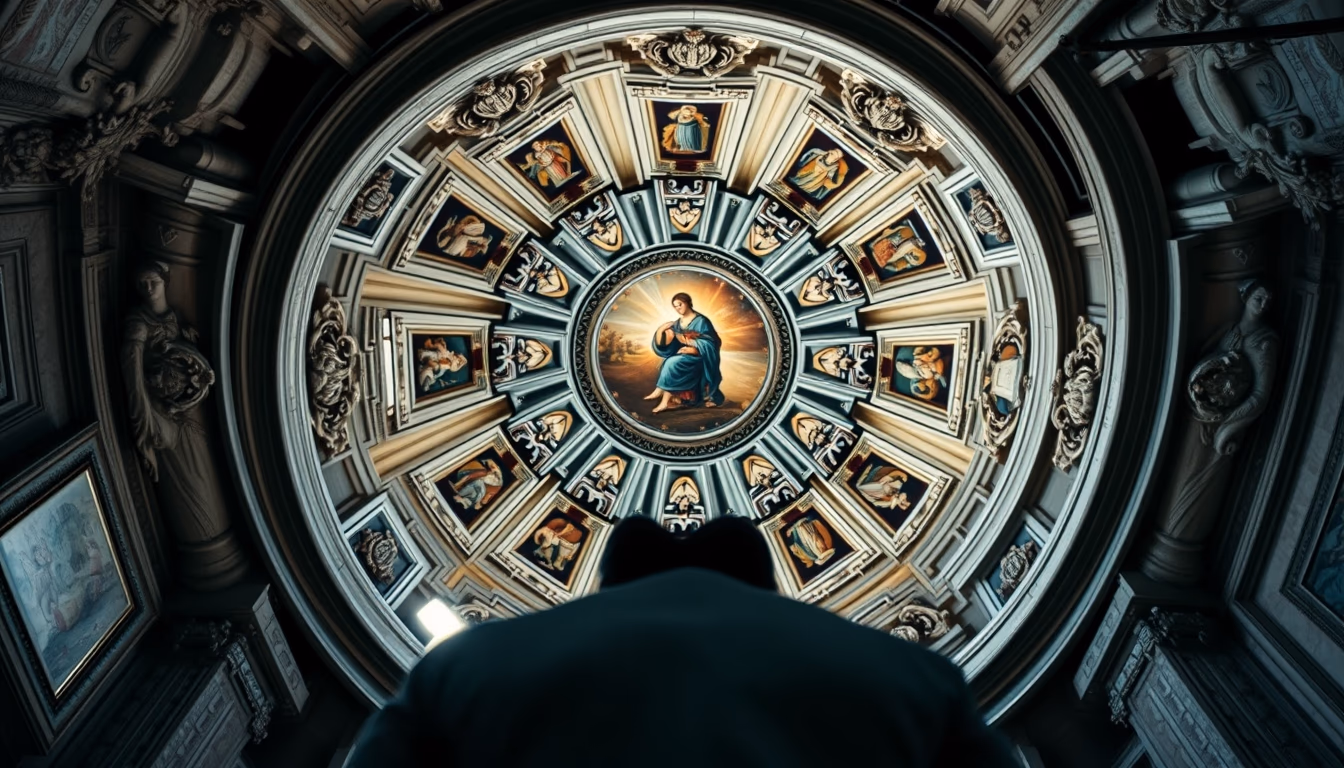 Editorial image of sistine chapel ceiling, studio editorial portrait.