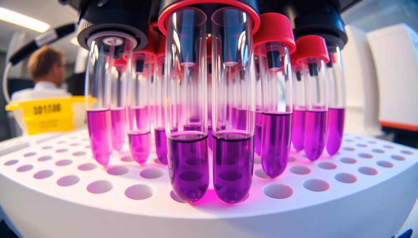 Editorial image of spectrophotometer cuvettes, fish eye wide angle.