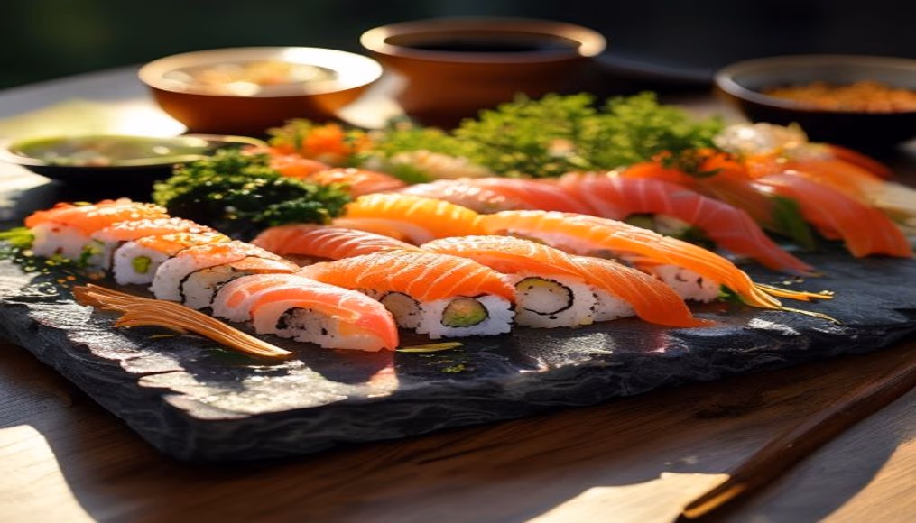<a href="https://xn--utiliza-eza.com/en/imagens/sushi-platter-on-slate-elegant-travel-photography-v10">Sushi platter on slate elegant</a> by <a href="https://xn--utiliza-eza.com">UtilizAí</a>, licensed under <a href="https://creativecommons.org/licenses/by/4.0/">CC BY 4.0</a>.
