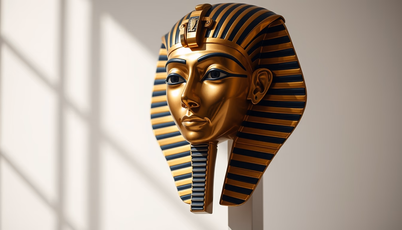 Editorial image of tutankhamun mask, minimalist composition.