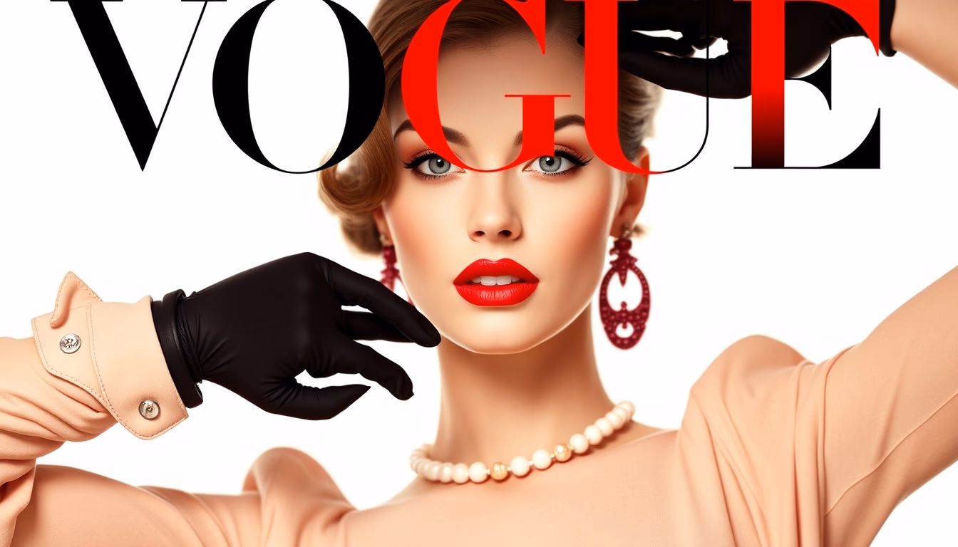 Editorial image of vogue 1950s cover, commercial product photography.