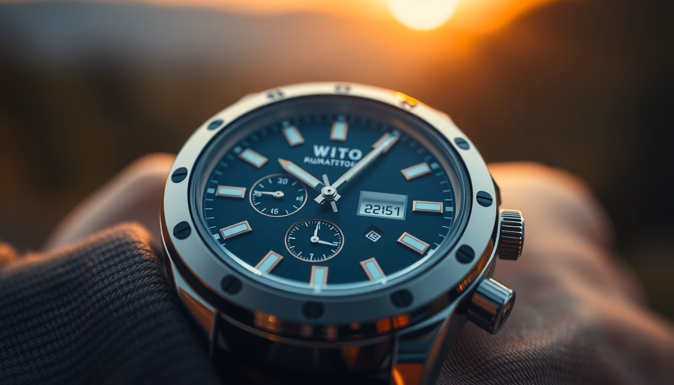 Editorial image of watch face macro luxury, cinematic wide shot.
