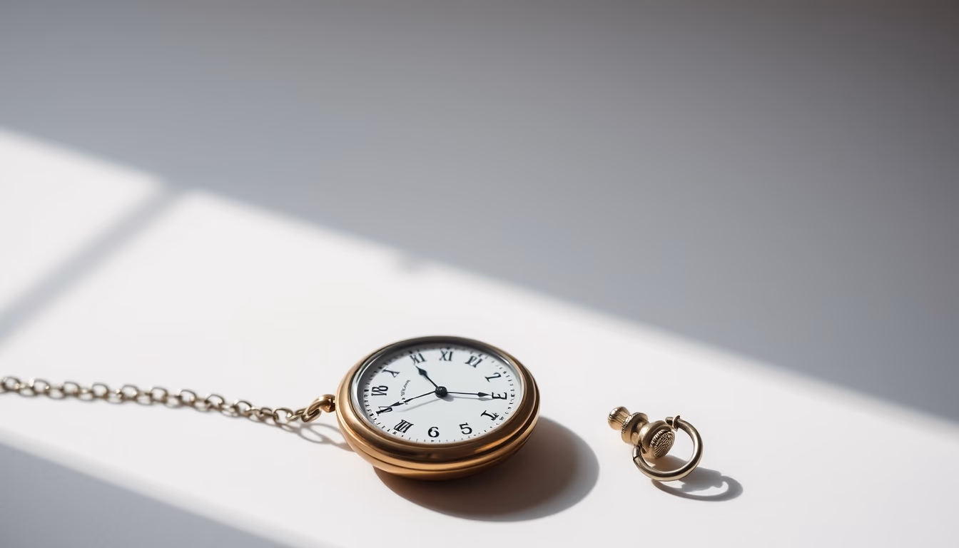 Imagem editorial de pocket watch antique, minimalist composition.