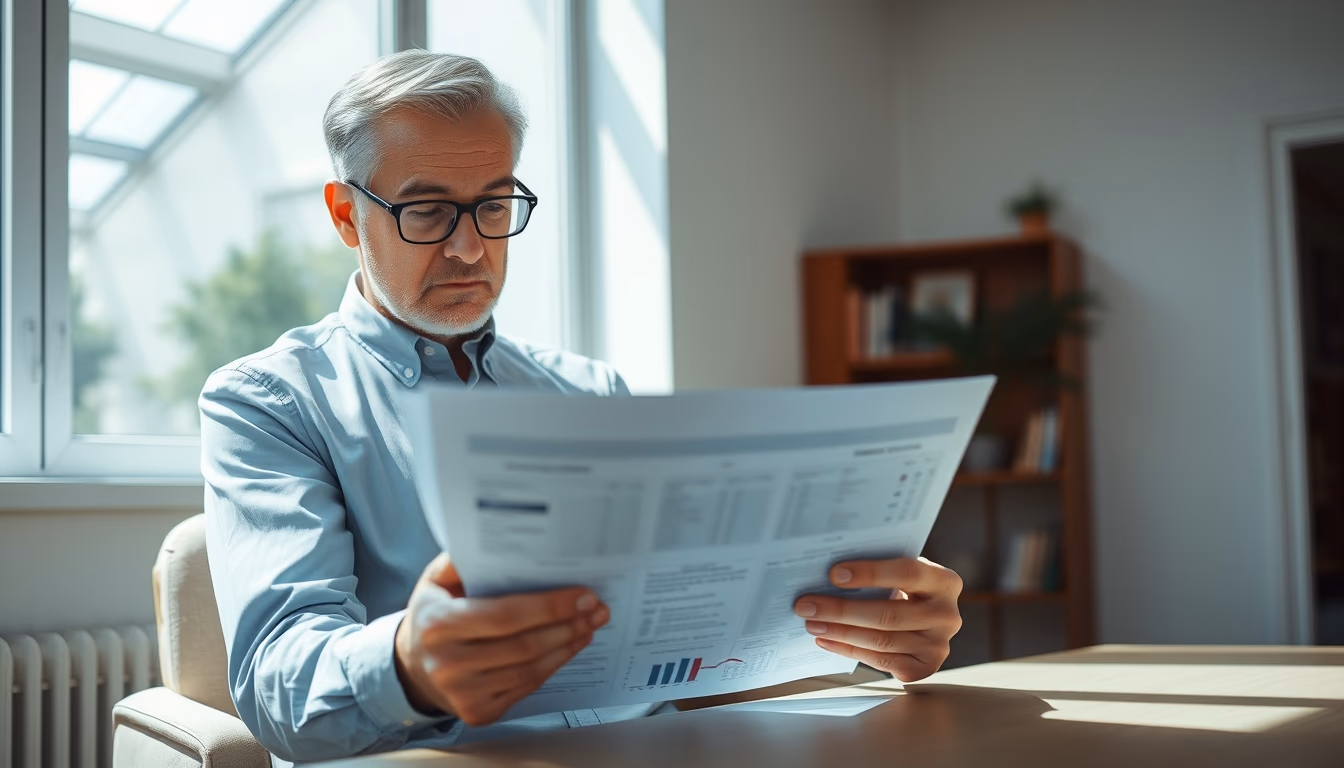 Imagem editorial sobre fundos imobiliários FII. retired investor reviewing real estate fund portfolio, com luz natural. Útil para artigos sobre fundos imobiliários FII no Brasil.